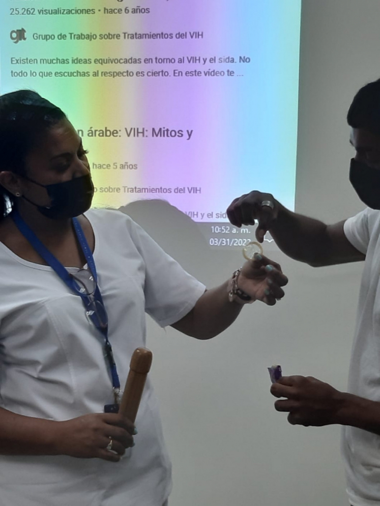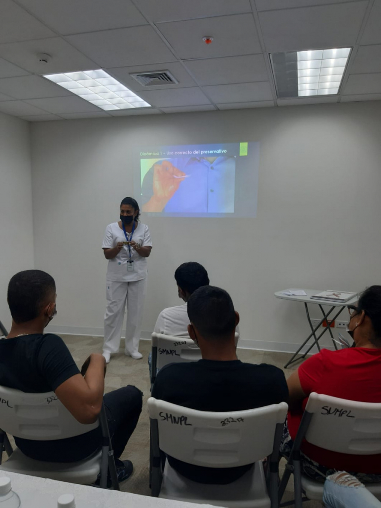 Panamá, 1 de abril de 2022. Utilizar el condón de manera correcta, evitar situaciones de riesgo, promover una vida sexual sana con un comportamiento responsable evitando el contagio del VIH-SIDA y las infecciones de transmisión sexual (ITS), fue el objetivo de la conferencia “Prevención de VIH-SIDA Desde la Experiencia del Personal de Enfermería”, brindada a la población con medidas no privativas de libertad del Instituto de Estudios Interdisciplinarios (IEI).