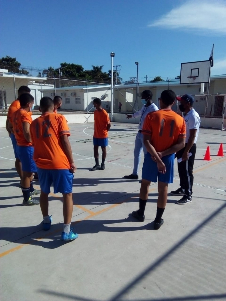 Panamá, 2 de agosto de 2021. Con el objetivo de promover la buena utilización del tiempo, la disciplina, la salud física y mental, el trabajo en equipo, el desarrollo de talentos y habilidades, y la cultura deportiva, se dio inicio a la gira deportiva de entrenamiento y formación de futsal, organizada entre el Instituto de Estudios Interdisciplinarios (IEI) y el Instituto Panameño de Deportes (PANDEPORTES), en los centros de custodia y cumplimiento de Herrera y el Aurelio Granados Hijo de Chiriquí.