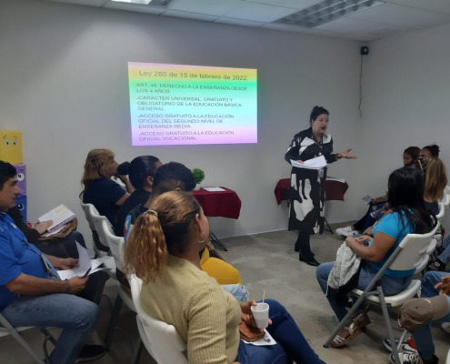Malva Rosa Pérez, defensora pública de adolescentes, indicó que la Ley 409 empezará a regir para el mes de mayo de 2024 con artículos explícitos para el logro de los requerimientos educativos. “Es una Ley vasta y amplia, y confiamos que va a ser de gran utilidad por ser herramientas que se van a utilizar conjuntamente con la convención de los derechos del niño-niña, que incluye la protección hasta los 18 años de edad y a la vez complementará la Ley 40 del Régimen Especial de Responsabilidad Penal para la Adolescencia”, aclaró Pérez.