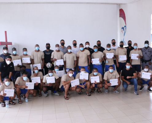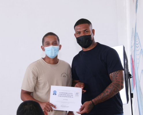Panamá, 31 de mayo de 2021. Una buena dosis de entusiasmo y optimismo bajo un sol radiante de esperanza recibieron los jóvenes del Centro de Cumplimiento de Las Garzas con la realización del Proyecto: “Emprendimiento y Deporte como Instrumentos de Cambio”, organizado por la Asociación de Futbolistas de Panamá (AFUTPA), en coordinación con el Instituto de Estudios Interdisciplinarios (IEI) y la Embajada de China.
