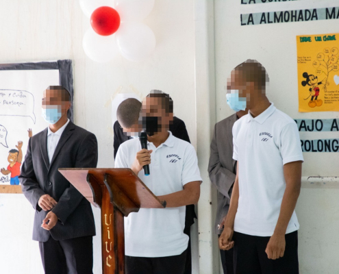 Panamá, 25 de mayo de 2022. “Agradezco la oportunidad y le pido perdón a mi madre por los errores que he cometido”, fueron las efusivas palabras de uno de los adolescentes en conflicto con la Ley Penal, partícipe del acto de graduación del programa: “Escuela de Valores” dictado por la Organización Dame Un Chance en el Centro de Custodia de Arco Iris (CCAI).