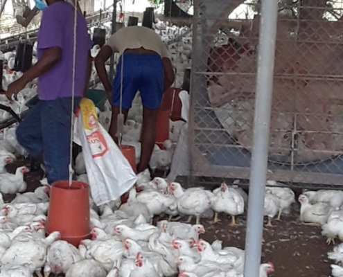 Panamá, 20 de diciembre de 2021. Unos 5 mil 760 pollos de engorde que arrojaron 37 mil 860 libras fue el resultado de la cosecha efectuada en la granja avícola de autogestión del Centro de Cumplimiento de Las Garzas, dando por culminado de manera exitosa el proyecto número 24.
