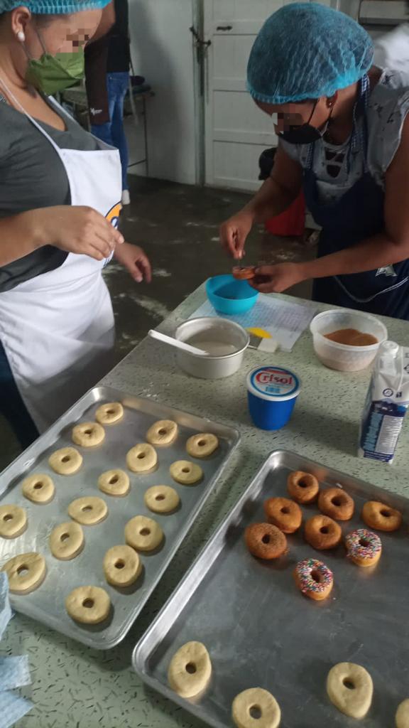 Los participantes comenzaron el aprendizaje con la elaboración de dulces, donas, panes, moñitas, diferentes tipos de biscochos, rollitos de cinnamon, continuando con las mezclas de sabores para la elaboración de diferentes tipos de pasteles y demás delicias; al culminar la formación que comprendió 40 horas de duración, cada uno recibió un certificado de graduación acreditándose para el ejercicio de la profesión.