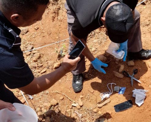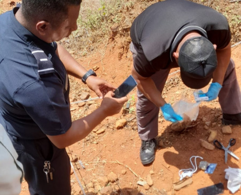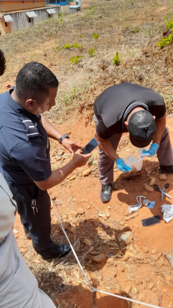 Panamá, 13 de abril de 2023. – Un envoltorio con sustancia vegetal que se presume sea marihuana, hojas de “feeling” (para hacer cigarrillos) y un celular con su cargador fueron decomisados en el Centro de Cumplimiento de Las Garzas (CCLG), mediante un operativo de seguimiento por sospecha efectuado por los custodios del Instituto de Estudios Interdisciplinarios (IEI) en horas del mediodía.