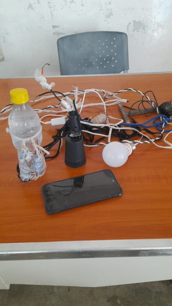 De igual manera, mediante una requisa rutinaria se decomisaron en uno de los dormitorios de la Fase cables, un objeto contundente de hierro, celular con cargador, bombillo eléctrico y una roseta giratoria.