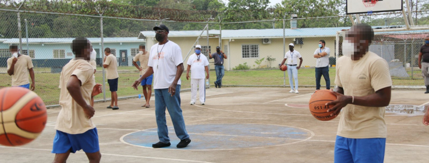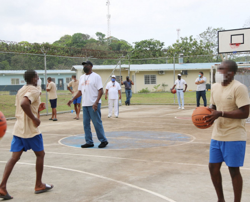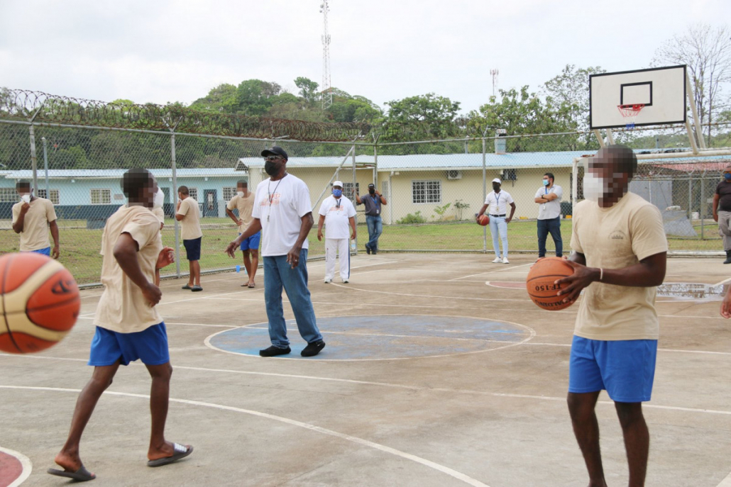 Panamá, 13 de abril 2021. Los jóvenes de los centros de cumplimiento de Las Garzas y Basilio Lakas en la provincia de Colón compartieron con el exjugador y gloria del baloncesto panameño Mario Butler, quien lidera la Asociación Big Brother, que busca apoyar la sana disciplina del baloncesto entre los adolescentes en conflicto con la ley penal.