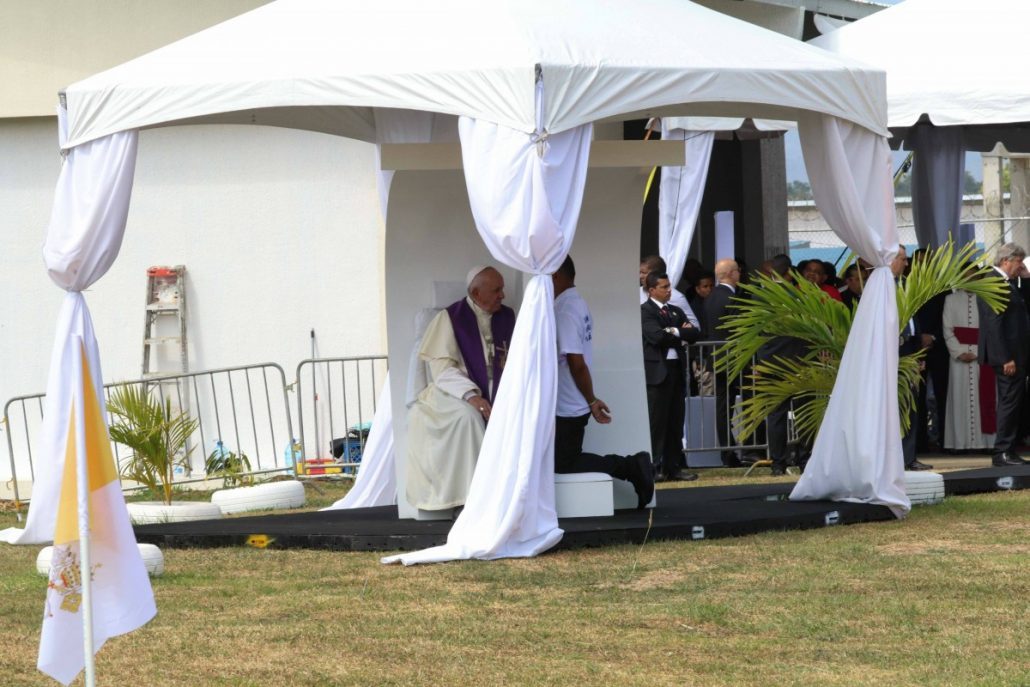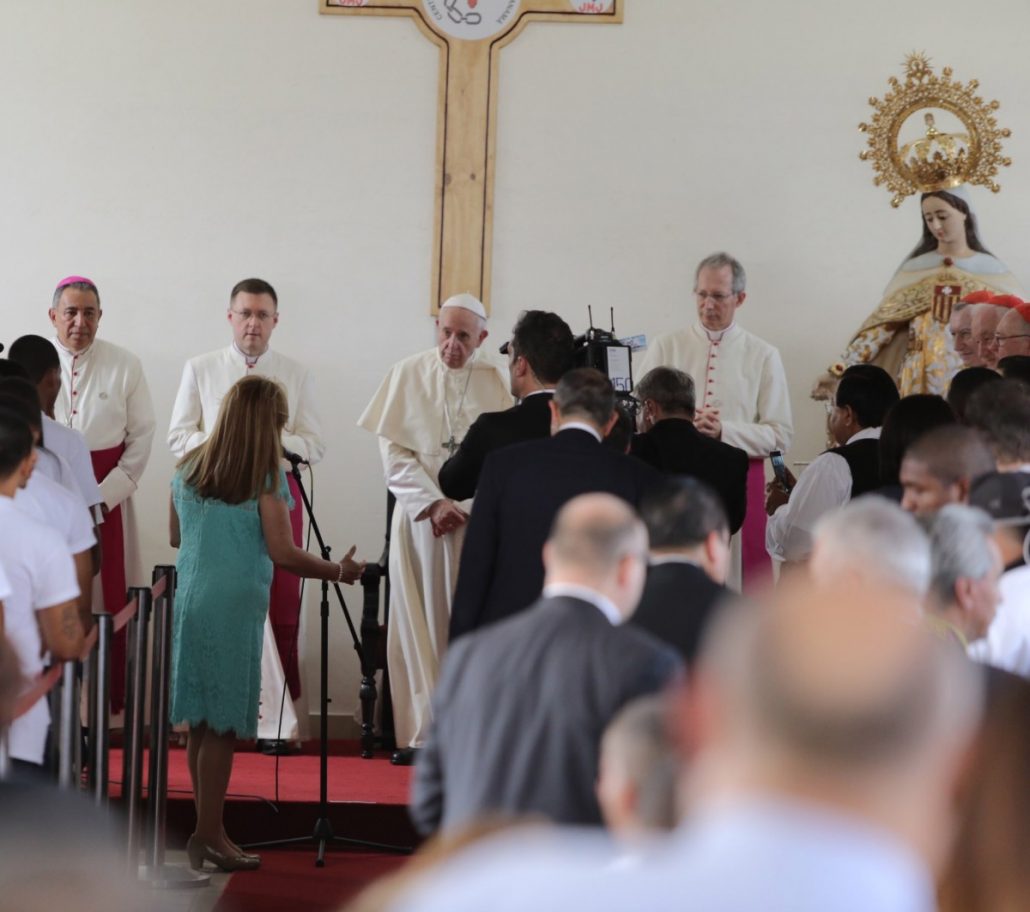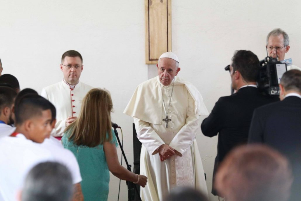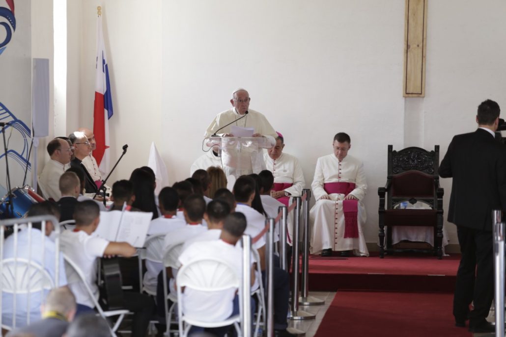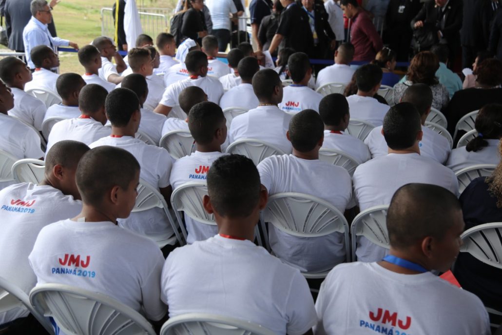 Panamá, 25 de enero de 2019. – Con un mensaje de esperanza, rehabilitación y segundas oportunidades el Papa Francisco llegó al Centro de Cumplimiento de Adolescentes, en Las Garzas, donde, por primera vez en la historia de las Jornadas Mundiales de la Juventud, se realiza una liturgia penitencial dirigida a jóvenes que se encuentran recluidos en cumplimiento de penas.