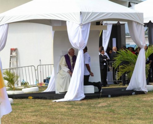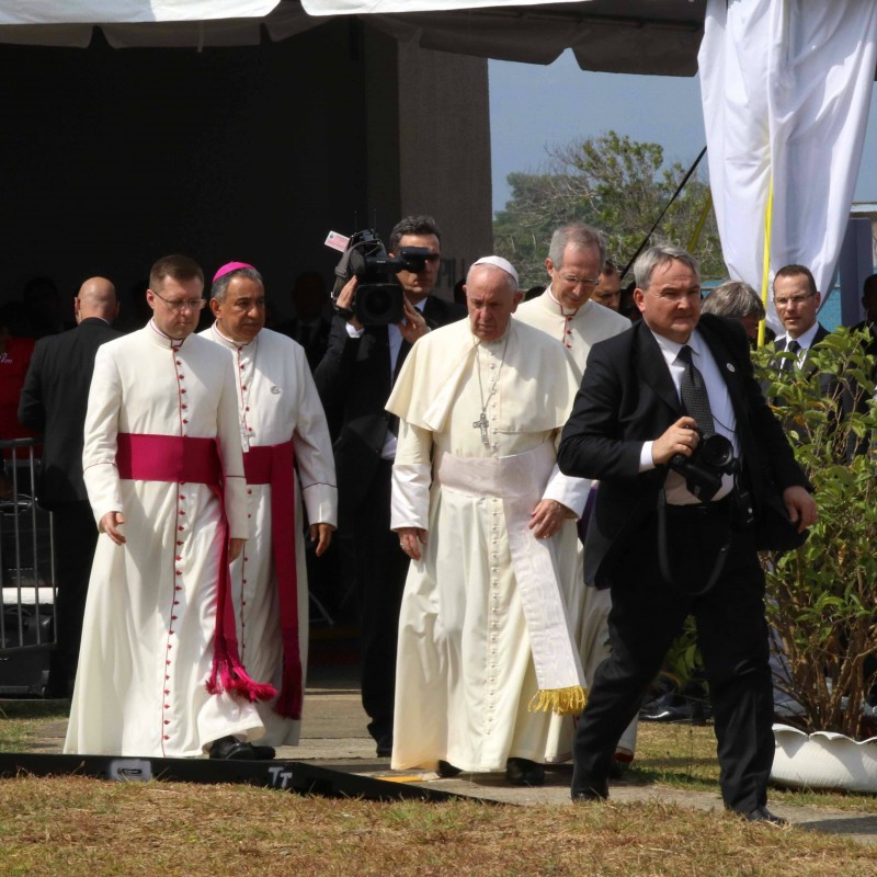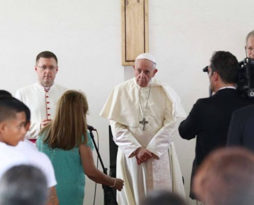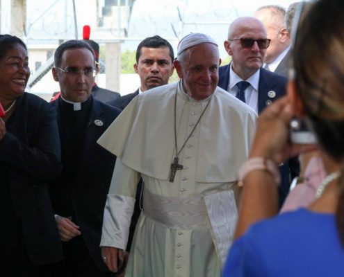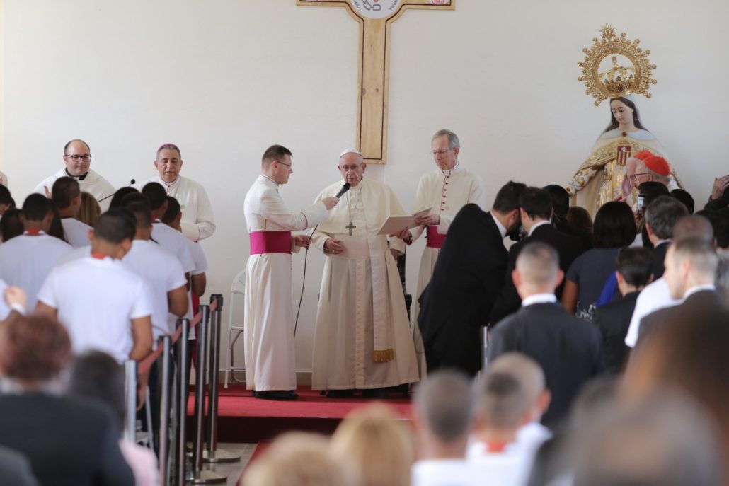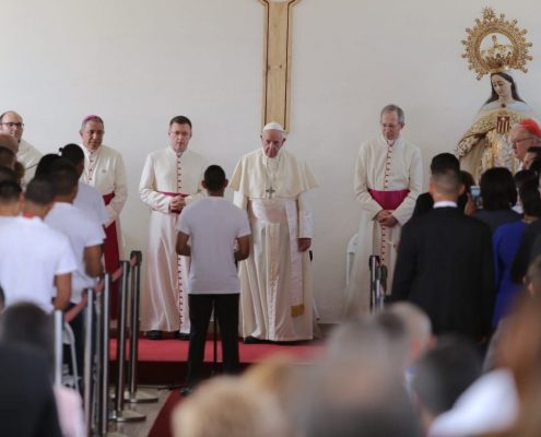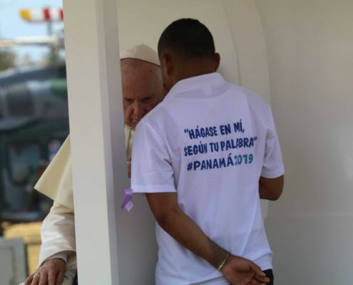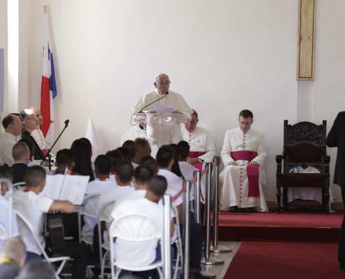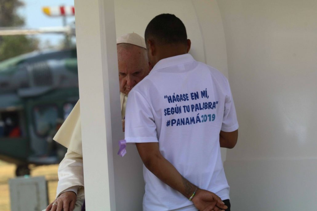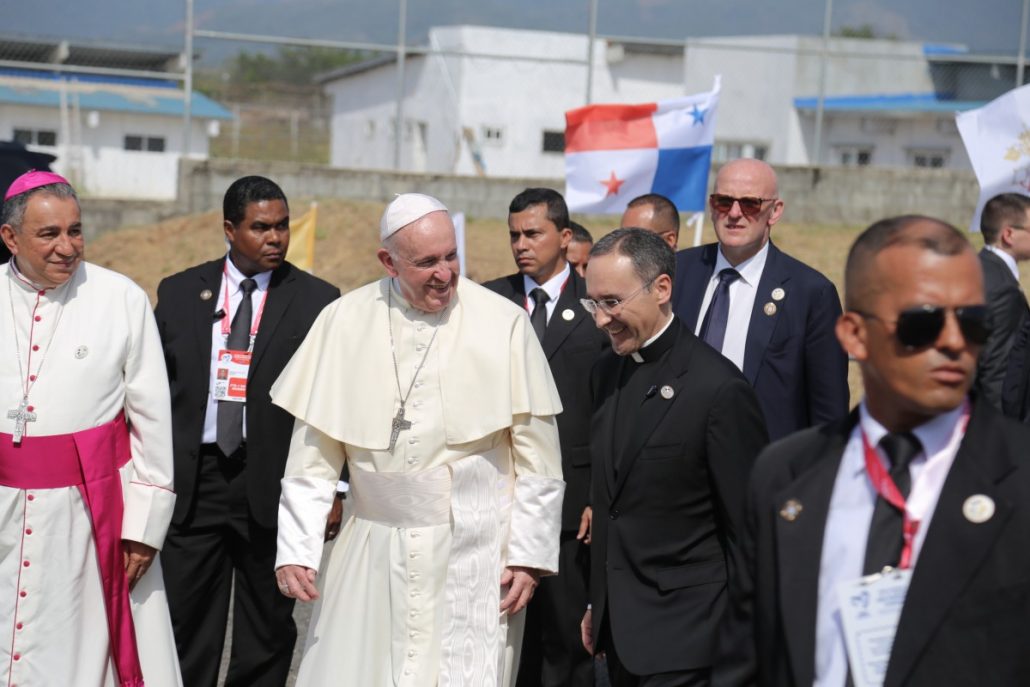 Panamá, 25 de enero de 2019. – Con un mensaje de esperanza, rehabilitación y segundas oportunidades el Papa Francisco llegó al Centro de Cumplimiento de Adolescentes, en Las Garzas, donde, por primera vez en la historia de las Jornadas Mundiales de la Juventud, se realiza una liturgia penitencial dirigida a jóvenes que se encuentran recluidos en cumplimiento de penas.