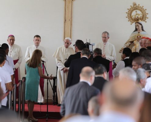 Una vez finalizada la liturgia penitencial, Emma Alba Tejada, directora nacional del Instituto de Estudios Interdisciplinarios dio palabras de agradecimiento al Papa Francisco por haberse pensado en estos jóvenes y enseñarles que ellos también son parte de esta Jornada Mundial de la Juventud. “Papa Francisco usted está rodeado en este Centro de 167 jóvenes que tienen fe, que al momento de anunciar su presencia se llenaron de emoción, ilusión y esperanza. Se sintieron bendecidos al saber que usted se acordó de ellos. Gracias por confirmarles que los ama”, dijo Alba Tejada.