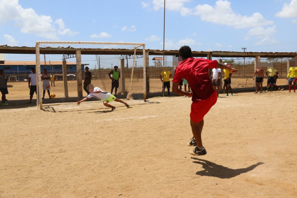 Se formaron cuatro equipos con jóvenes de 8 pabellones. En esta ocasión realizaron dos partidos de futbol, aunque previamente fueron atendidos en la interiorización de normas, valores, creatividad, actitudes competitivas, trabajo en equipo, entre otros.