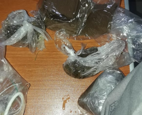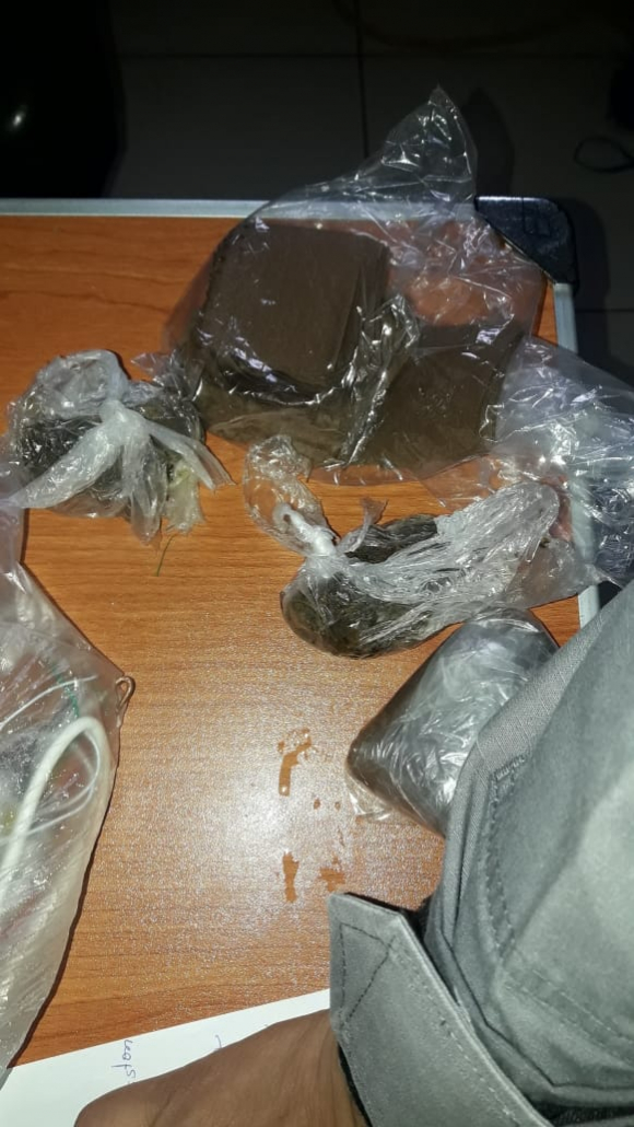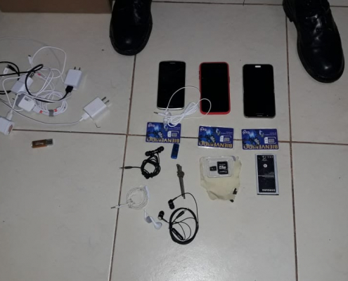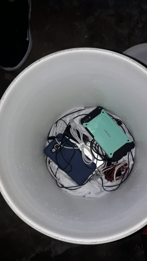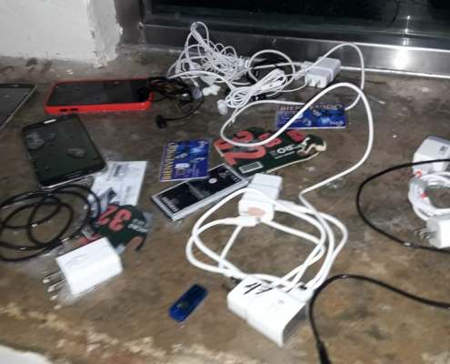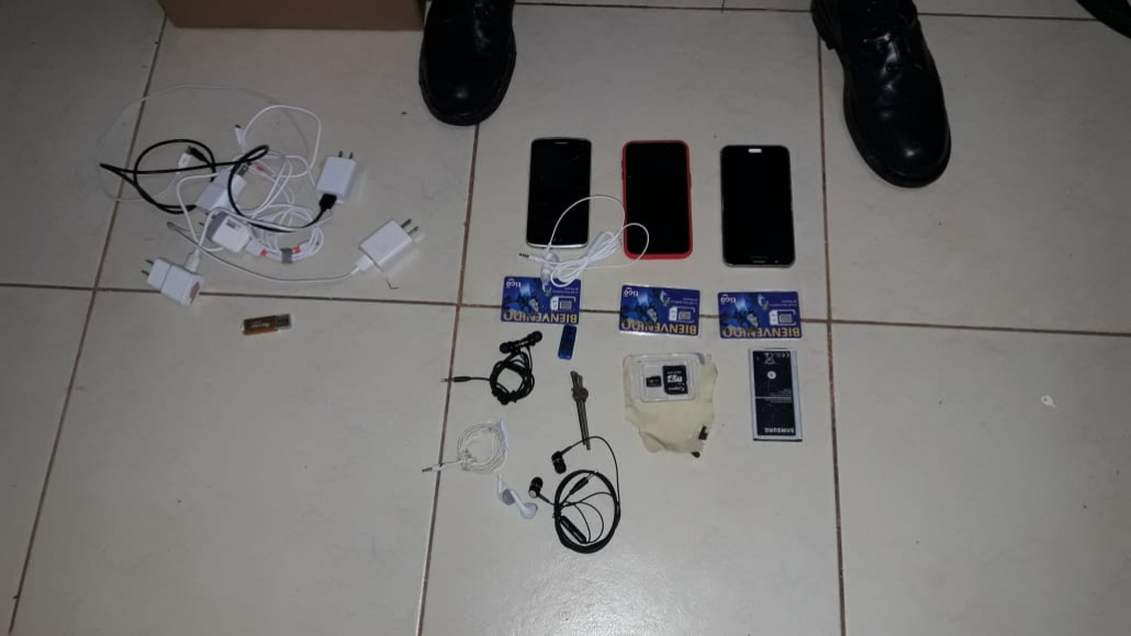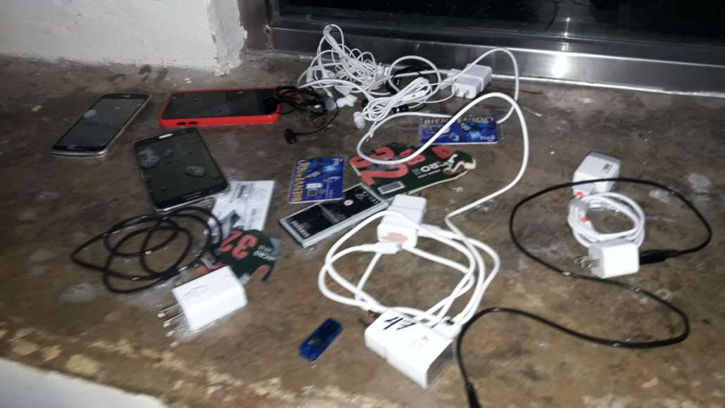 Panamá, 25 de agosto de 2021. La ronda de vigilancia del Centro de Cumplimiento de Las Garzas sorprendió a un sujeto introduciendo una bolsa con objetos ilícitos como celulares, cargadores, audífonos, botellas de whisky, cigarrillos, cover, cable eléctrico, mochila, memorias USB, baterías de celular, chips, bocina, cable para USB, hojas de “feeling” y un envoltorio con presunta marihuana en el pabellón de Formación y Crecimiento de Adultos.
