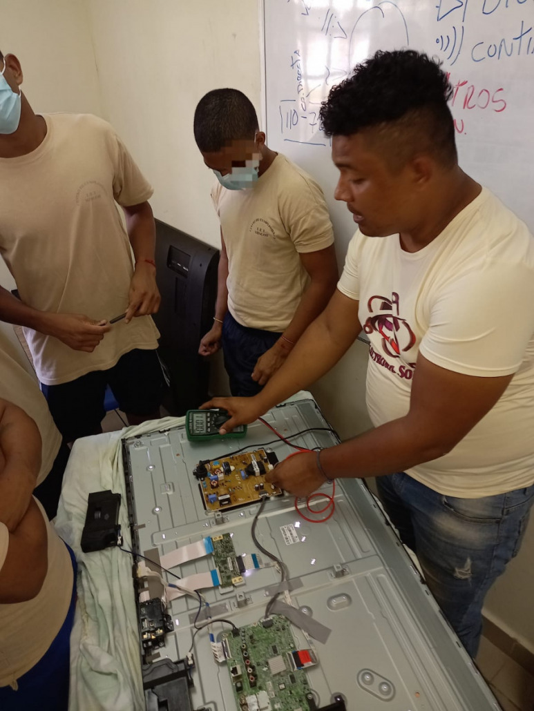 Colón, 6 de enero 2023. Convertirse en profesionales de la electrónica es la meta que definieron para este nuevo año 2023 un grupo de 31 adolescentes en conflicto con la Ley Penal del Centro de Custodia y Cumplimiento Basilio Lakas (CCCBL), de la provincia de Colon, iniciando la capacitación en Electrónica General, llevada a cabo por gestión del Instituto de Estudios Interdisciplinarios (IEI) como parte de las ofertas resocializadoras para la formación laboral.