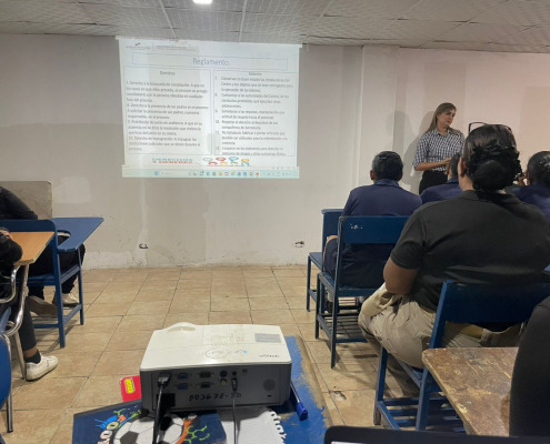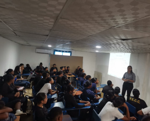 La ponencia estuvo a cargo de Noris Guevara, directora del CCCRF, ante un auditorio compuesto por 40 estudiantes. “Recibimos la invitación para intervenir como entidad encargada de adolescentes en conflicto con la Ley Penal, buscando concientizar a esta población vulnerable a reducir factores de riesgo y evitar la participación delictiva, seguiremos apoyando la prevención”, indicó Guevara.
