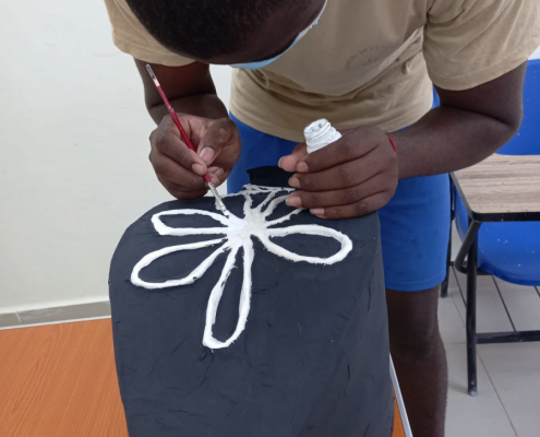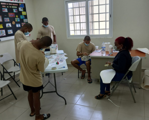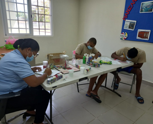 Panamá, 17 de abril de 2022. Reducir, Reutilizar y Reciclar son las tres “R” con las que los jóvenes privados de libertad del Centro de Custodia y Cumplimiento Basilio Lakas (CCCBL) de la provincia de Colón, aprenden a elaborar hermosas creaciones dentro de un espacio que promueve la relajación y despierta la creatividad.