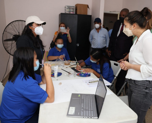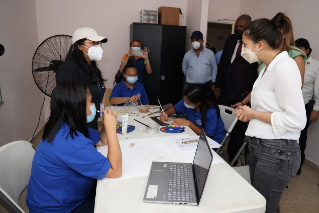 De igual forma; durante su visita, la Ministra de Gobierno habló con las jóvenes, visitó los talleres de pintura, costura, área de recreación, estudio y los dormitorios. Así mismo, conversó con el grupo de profesores del Ministerio de Educación que imparte las clases en los centros.