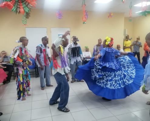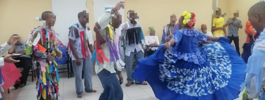 Panamá, 4 de junio de 2023. – Cantos, vestimentas coloridas y rítmicas danzas acompañados por el contagioso sonido de la caja y el tambor, se destacaron en los centros de custodia y cumplimiento del Instituto de Estudios Interdisciplinarios (IEI), al conmemorar el cierre del Mes de la Etnia Negra rindiendo honor a las rices africanas transmitidas generacionalmente.