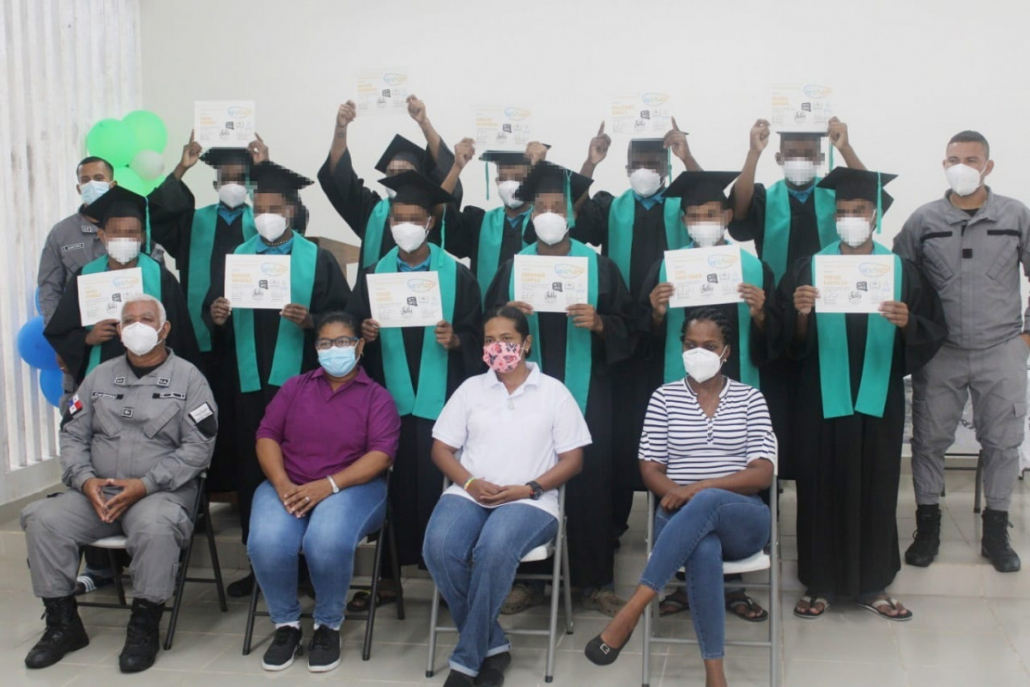 Panamá, 15 de mayo 2021. El Centro de Custodia y Cumplimiento Basilio Lakas de Colón se vistió de gala con la graduación de los jóvenes que formaron parte del curso de Verano de Oportunidades, organizado por la asociación Dame un Chance.