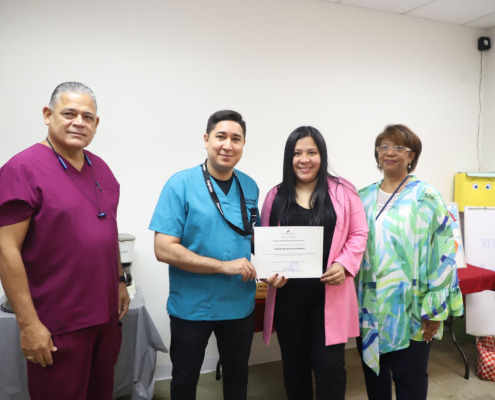 La directora nacional del IEI, Yalineth Pitty entrega certificados de agradecimiento a los médicos del Centro de Salud de Paraíso, personal de Probidsida y el Centro Familiar Cristiano, por su apoyo a esta iniciativa.