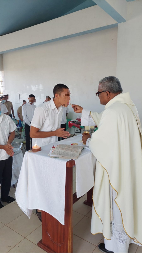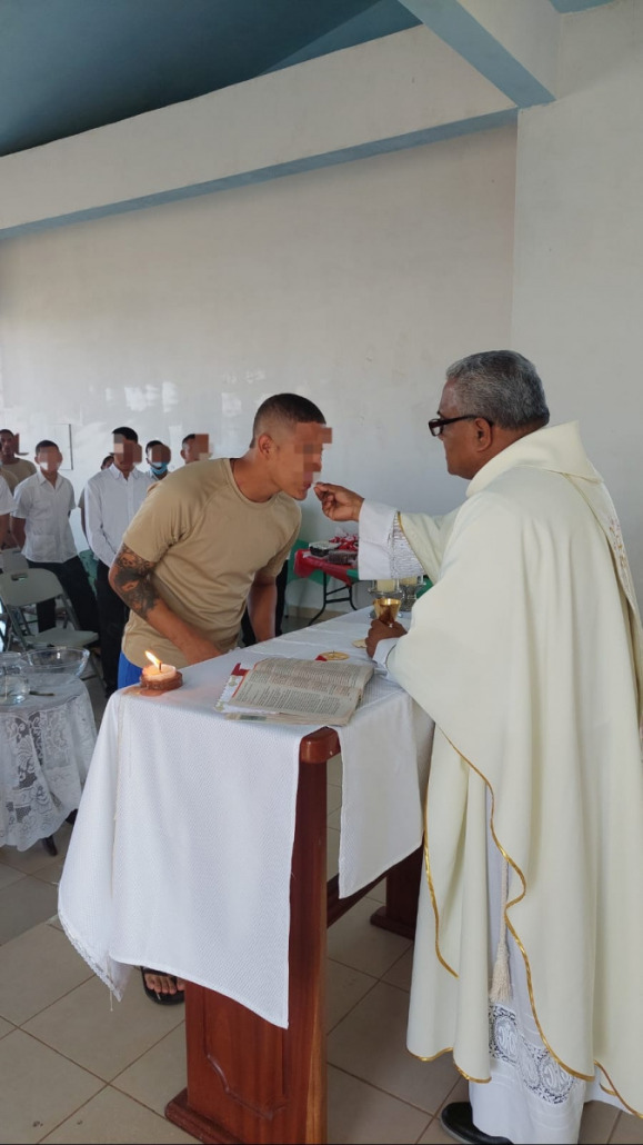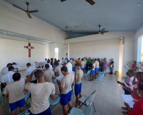 Panamá, 6 de enero de 2023.- Brilla la luz de esperanza en el Centro de Cumplimiento de Las Garzas (CCLG), un grupo de jóvenes en conflicto con la Ley Penal decidieron formar parte del cuerpo místico de Cristo como nuevos templos del Espíritu Santo, recibiendo el bautismo y la primera comunión en un despliegue de lágrimas de alegría para entregarse al servicio del bien como creaturas renovadas y resocializadas.