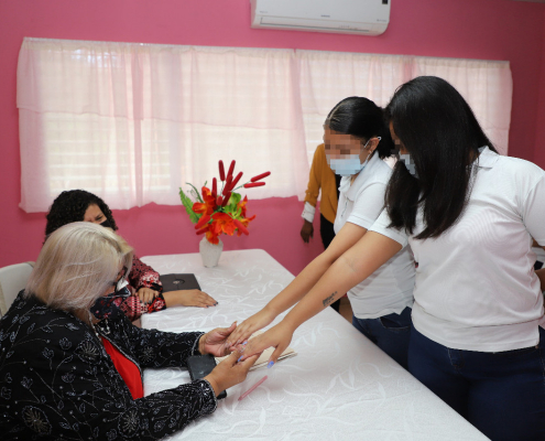 Panamá, 4 de marzo de 2022. Con la entrega de los certificados que las acreditan como manicuristas idóneas, ocho jóvenes del Centro de Custodia y Cumplimiento Residencia Femenina (CCCRF) culminaron el curso de “Elaboración de Uñas Acrílicas”, patrocinado por la Pastoral Social Caritas de la Arquidiócesis de Panamá, con el objetivo de capacitarlas en las diversas técnicas de manicura según las tendencias actuales.