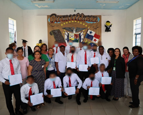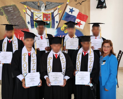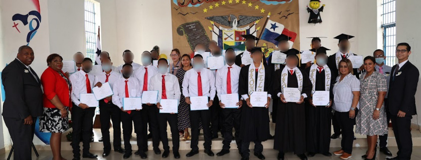 Panamá, 23 de diciembre de 2022. – Cumpliendo con los parámetros establecidos en el Eje de Educación Formal del Modelo de Intervención Integral y la Ley 40 del Régimen Especial de Responsabilidad Penal para la Adolescencia, 18 adolescentes del Centro de Cumplimiento de Las Garzas (CCLG) recibieron sus certificados de graduación por culminar exitosamente el plan de estudios en premedia y media, que los habilita para continuar estudios ulteriores.