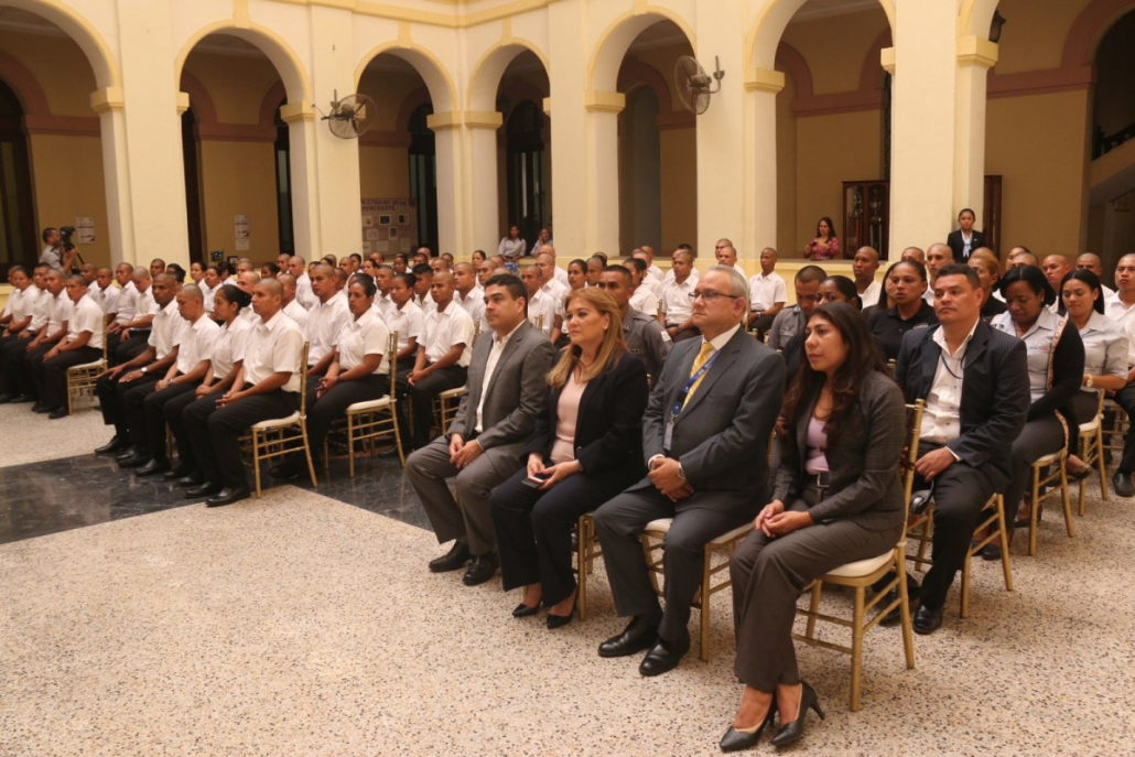 Este acto contó con la presencia de la secretaria general, Maritza Royo; el director general del Sistema Penitenciario, Armando Medina; la directora del Instituto de Estudios Interdisciplinarios (IEI), Emma Alba Tejada; y el subdirector Institucional de Recursos Humanos, Alcibíades Solís.