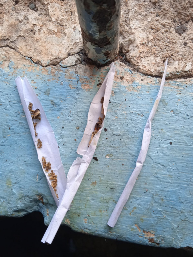 Panamá, 23 de diciembre de 2022. – Cigarros con materia vegetal seca, presunta sustancia ilícita, un martillo y un clavo de acero fueron decomisados por los custodios del Instituto de Estudios Interdisciplinarios (IEI) mediante requisa diurna realizada en la Fase de Formación y Crecimiento de Adultos B del Centro de Cumplimiento de Las Garzas (CCLG).