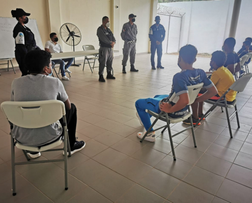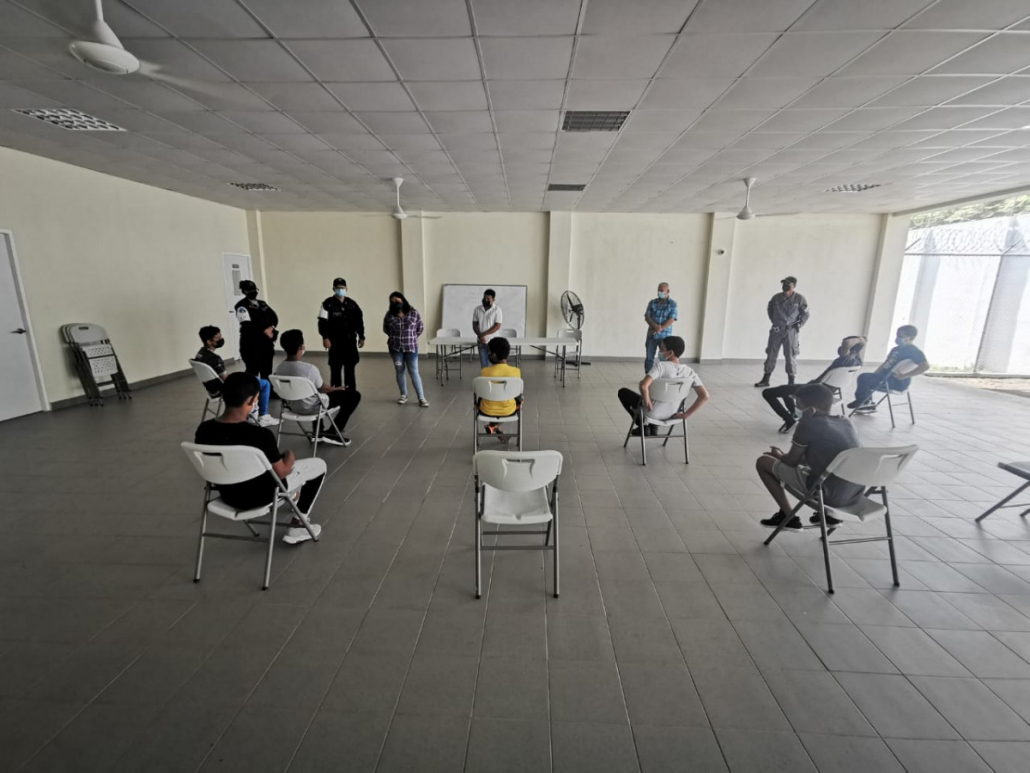 Panamá, 19 de junio de 2021. Con el propósito de rescatar y salvaguardar a los jóvenes en riesgo social, el Centro de Custodia y Cumplimiento de Herrera en coordinación con la Policía de Niñez y Adolescencia efectuó la primera jornada didáctica de orientación y concienciación para adolescentes en etapa de rebeldía y deserción escolar.