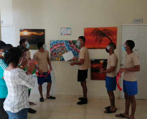 Panamá, 16 de febrero de 2022. Bajo el nombre “Pintando Esperanzas”, se inauguró la primera galería de arte del Centro de Cumplimiento de Las Garzas (CCLG), como una vitrina para mostrar el talento artístico de los adolescentes en conflicto con la Ley Penal, buscando la integración y el rescate de los valores mediante la expresión artística.