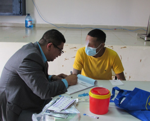 Chiriquí, 11 de noviembre de 2022. – Prevenir el contagio o lograr la detección temprana fue el objetivo de la “Jornada de Salud y Charla sobre el VIH/SIDA”, organizada por el Instituto de Estudios Interdisciplinarios (IEI) en alianza con el Ministerio de Salud (Minsa) y el Instituto Nacional de Formación Profesional y Capacitación para el Desarrollo Humano (INADEH) dirigido a los jóvenes adultos privados de libertad bajo Ley 40 del Centro Penitenciario de Chiriquí.