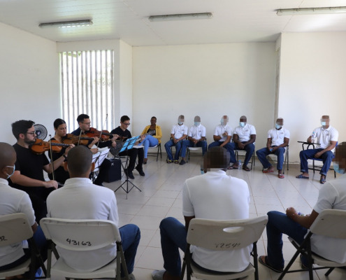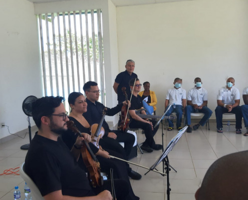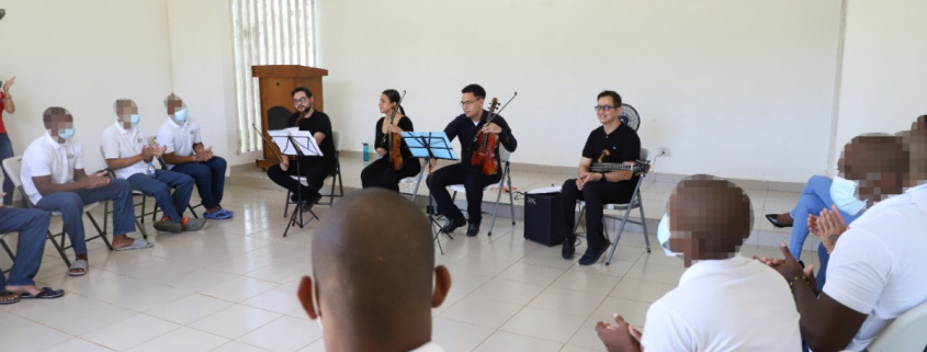 Entre las melodías interpretadas por los músicos del cuarteto de cuerdas se destacaron una variedad de ritmos entre el vals, tango argentino, pasillos panameños como el “Suspiro de una Fea”, al igual que estilos bailables con el tema “Despacito”, entre otros que lograron cautivar y despertar el entusiasmo entre los internos aspirantes a formar parte de la orquesta.