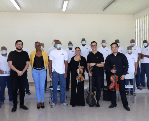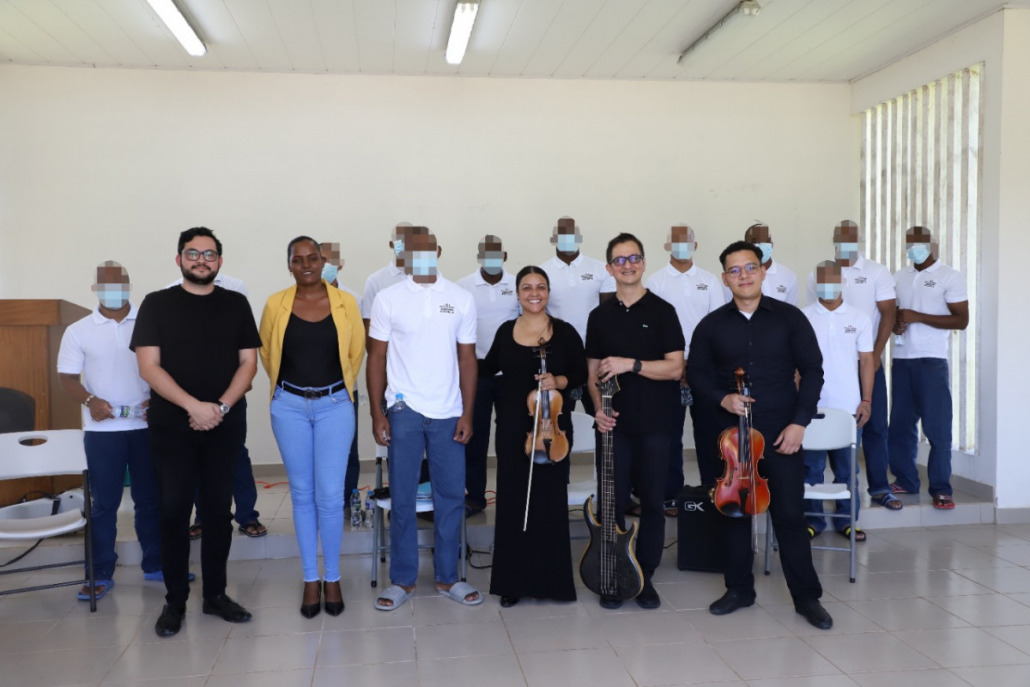 Panamá, 26 de septiembre de 2022. Atraídos por las melodiosas notas de los violines, la viola y el bajo, doce jóvenes del Centro de Custodia y Cumplimiento Basilio Lakas (CCCBL) de la provincia de Colón, participaron del primer concierto de captación para los quintetos musicales de la “Orquesta Juvenil del Instituto de Estudios Interdisciplinarios” con el apoyo de la Red Nacional de Orquestas y Coros Infantiles y Juveniles del Ministerio de Cultura (MiCultura).