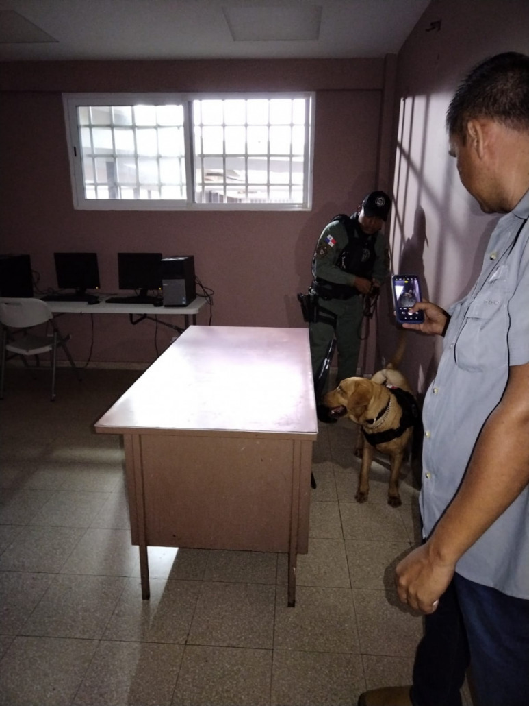 La inspección con el apoyo de los canes entrenados para la detección de material ilegal se llevó a cabo por todas las instalaciones internas y patios del centro culminando de manera exitosa, corroborando el buen estado de seguridad en que se encuentra el CCCRF.