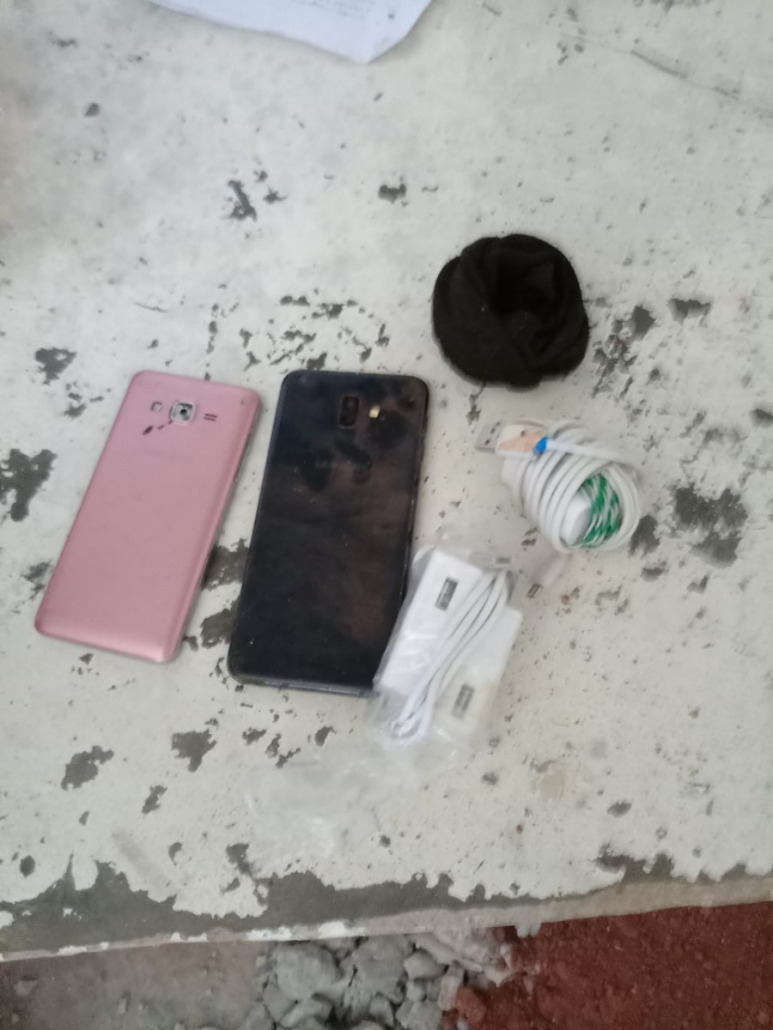 Panamá, 5 de septiembre de 2023. – Dos celulares, envueltos dentro de un calcetín y un par de cargadores blancos fueron encontrados en la Fase de Desempeño y Compromiso por custodios del Instituto de Estudios Interdisciplinarios (IEI) durante una requisa sorpresa efectuada en el Centro de Cumplimiento de Las Garzas (CCLG).