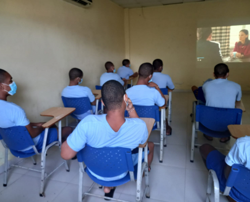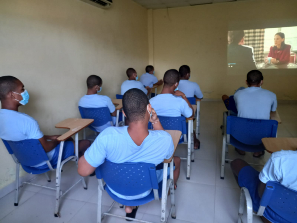 Panamá, 2 de abril de 2022. Intercambio de opiniones, puntos de vistas, enfoques e ideologías haciendo uso de la concentración el análisis y el razonamiento, los jóvenes del Centro de Custodia y Cumplimiento Basilio Lakas de Colón (CCCBL) participaron de un cinefórum con la película “Escritores de la Libertad” de Richard LaGravenese, para lograr una reflexión crítica que promueva la transformación interior.