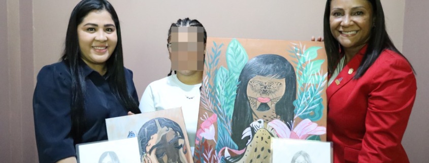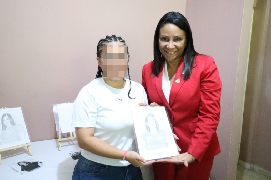 La ministra Palacio interactuó con las jóvenes, además de escuchar sus vivencias y compartirles mensajes de exhortación; mientras que estas les mostraron las diferentes manualidades que realizan en los cursos que son impartidos en el lugar e hicieron entrega de cuadros pintados por ellas, tanto a la Ministra como a la directora del IEI.
