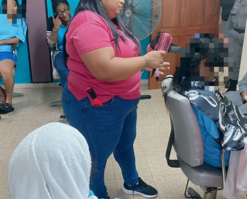 Panamá, 25 de noviembre de 2022. – “La puerta abierta de la belleza es una escalera casi completa para nosotras”, manifestó sonriendo una joven del Centro de Custodia y Cumplimiento Residencia Femenina (CCCRF), al iniciar el curso en “Alisado y Queratina”, fruto del convenio de cooperación estratégica entre el Institutito de Estudios Interdisciplinarios (IEI) y el Instituto Nacional de Formación Profesional y Capacitación para el Desarrollo Humano (INADEH).