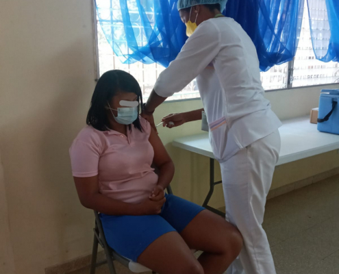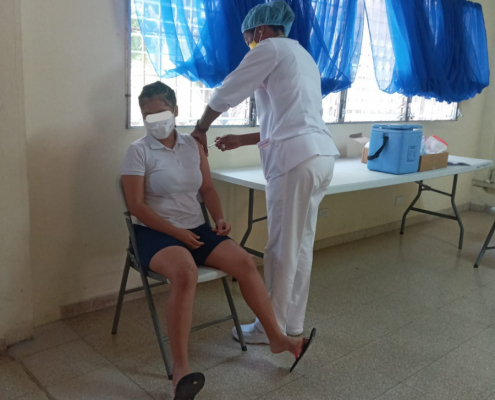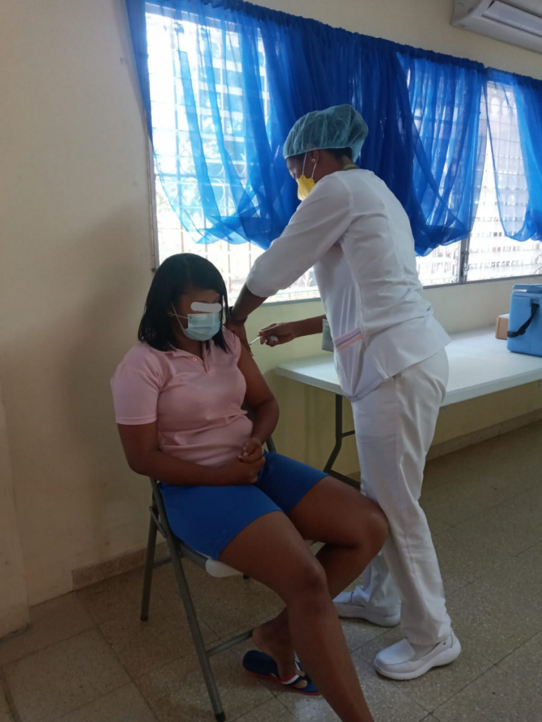 Panamá, 8 de febrero de 2022. La dosis de refuerzo llegó al Centro de Custodia y Cumplimiento Residencia Femenina (CCCRF), donde las 8 jóvenes que conforman la población privada de libertad, las custodias y el personal técnico y administrativo recibieron de manera voluntaria la inoculación con Pfizer.