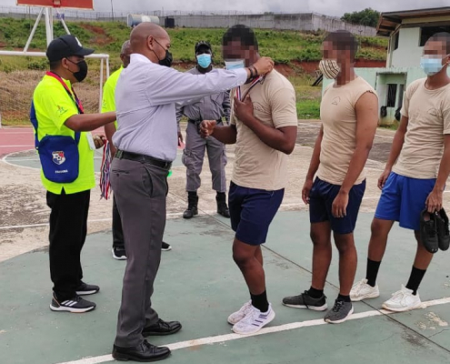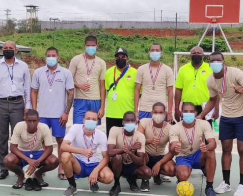 Panamá, 6 de julio de 2021. Con entrega de medallas al primero y segundo lugar, culminó el campeonato de Futsal realizado en el Centro de Cumplimiento de Las Garzas, organizado entre el Instituto de Estudios Interdisciplinarios (IEI) y Pandeportes.