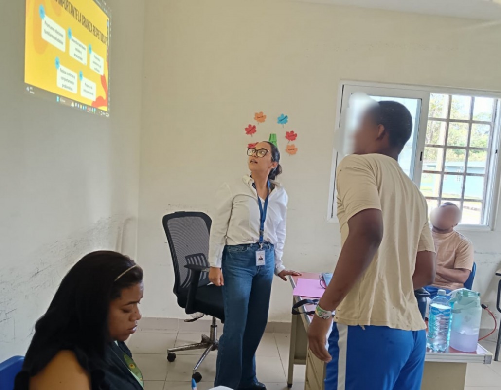 Colón, 8 de marzo de 2024. – Interacción familiar, a pesar de la privación de libertad, fue el objetivo del Programa Paternidad Responsable realizado en el Centro de Custodia y Cumplimiento Basilio Lakas (CCCBL) de la provincia de Colón, dirigido a la población de adolescentes en conflicto con la Ley Penal que son padres de familia.
