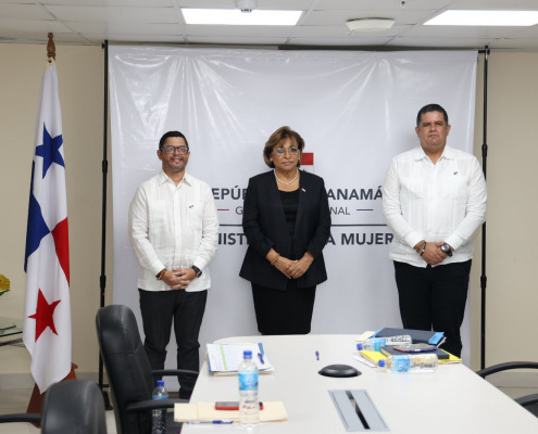 Panamá, 19 de julio de 2023. – Una reunión de alto nivel se llevó a cabo entre los ministros de Gobierno, Seguridad y la Mujer, Roger Tejada, Juan Pino y Juana Herrera, respecticamente, para que en coordinación con el Órgano Judicial y el Ministerio Público implementar brazaletes electrónicos a los agresores de violencia contra la mujer, con la finalidad de proteger a las víctimas.