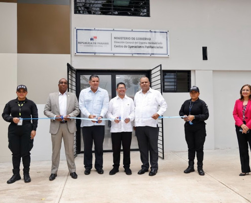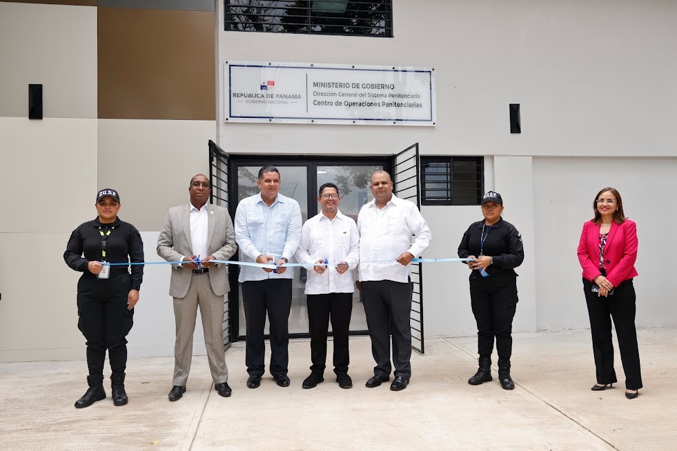 Panamá, 27 de junio de 2024. El ministro de Gobierno (Mingob), Roger Tejada B., acompañado por el ministro de Seguridad (Minseg), Juan Manuel Pino; el procurador General de la Nación (PGN), Javier Caraballo y el director General del Sistema Penitenciario, Euclides Joel Castillo G., inauguró el primer Centro de Operaciones Penitenciarias en la República de Panamá y en la región centroamericana.