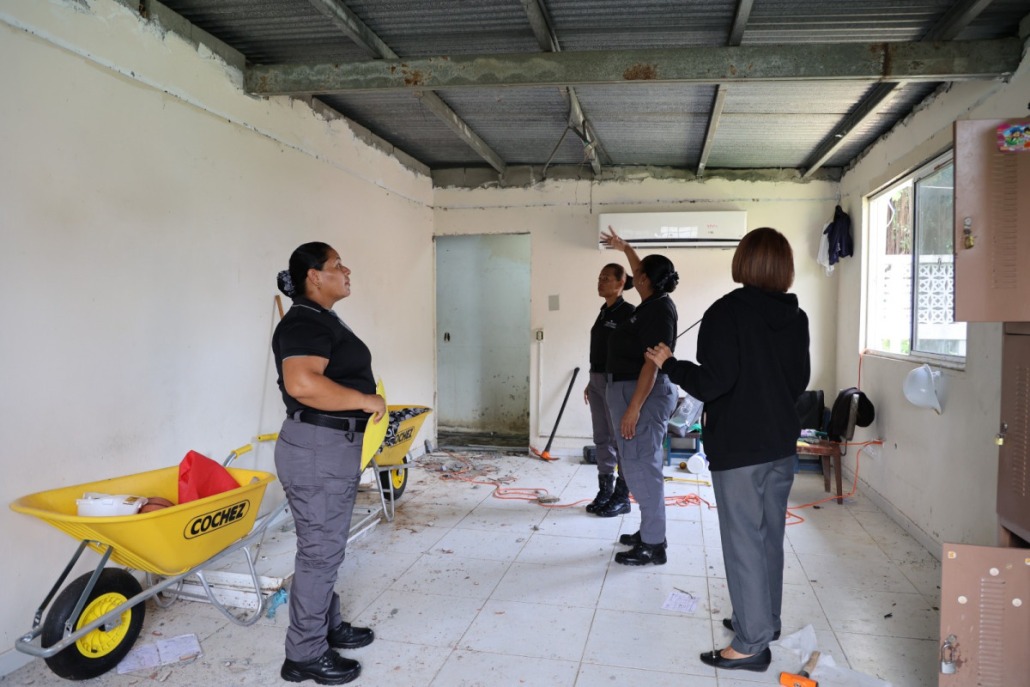 Panamá, 24 de julio de 2024. –El día de hoy iniciaron los trabajos de remodelación total de la cuadra de custodias en el Centro Femenino de Rehabilitación ‘Cecilia Orillac de Chiari’ (Cefere), que incluye un dormitorio adicional, ampliación de baños, cielo raso y pisos nuevos, remozamiento de paredes, reemplazo de techos, electricidad, plomería, sistema sanitario, pintura y mobiliario.