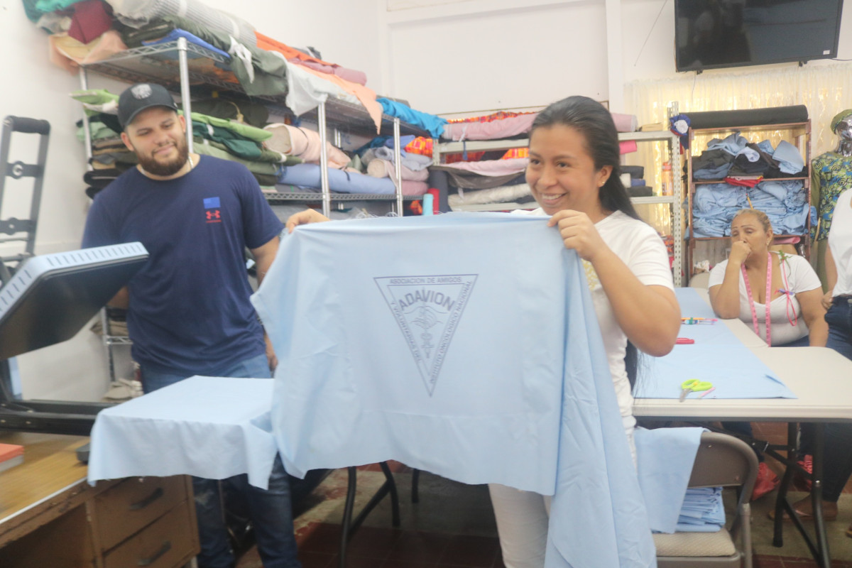 Muñoz explicó que se utilizaba la técnica de transfer térmico, que no es sostenible en el tiempo, tras varias lavadas pierde calidad, por ello Panamá Print Factory sugirió a Adavion utilizar la sublimación que es más rápida y sostenible en el tiempo, mejorando así la calidad del producto.