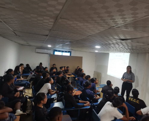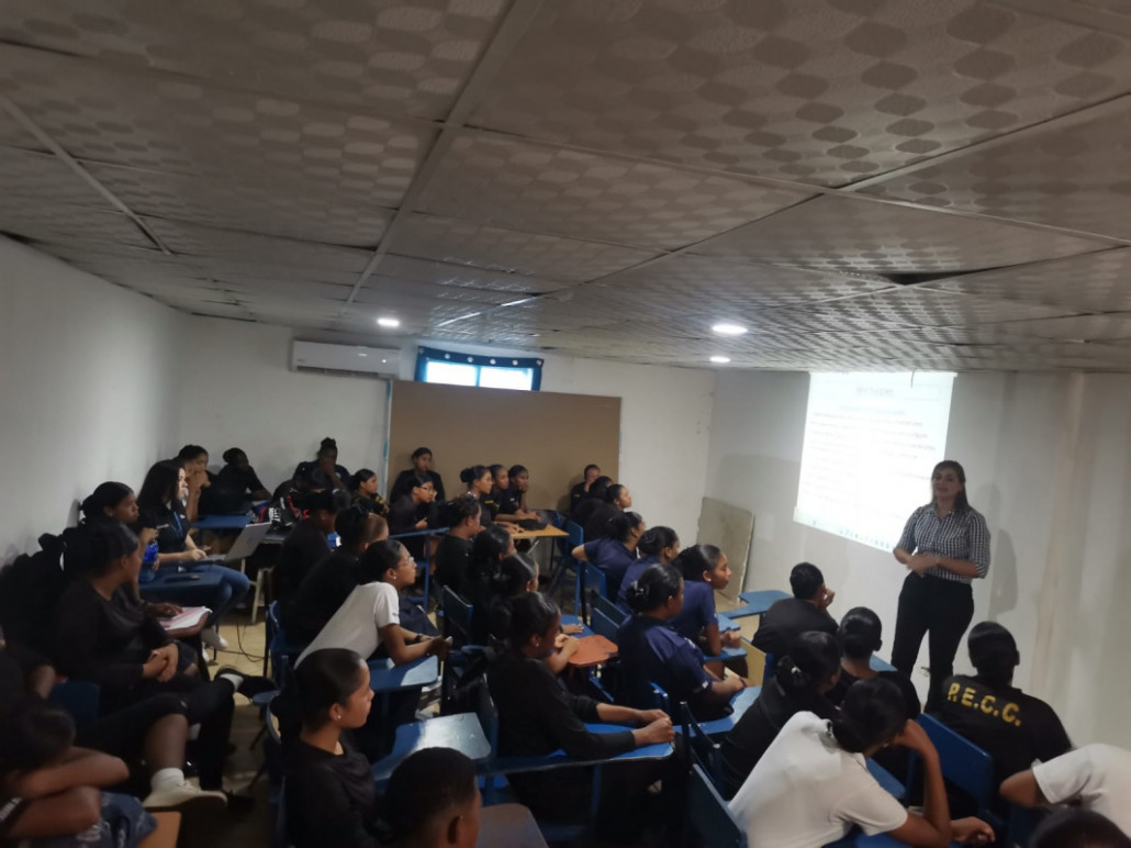 La ponencia estuvo a cargo de Noris Guevara, directora del CCCRF, ante un auditorio compuesto por 40 estudiantes. “Recibimos la invitación para intervenir como entidad encargada de adolescentes en conflicto con la Ley Penal, buscando concientizar a esta población vulnerable a reducir factores de riesgo y evitar la participación delictiva, seguiremos apoyando la prevención”, indicó Guevara.