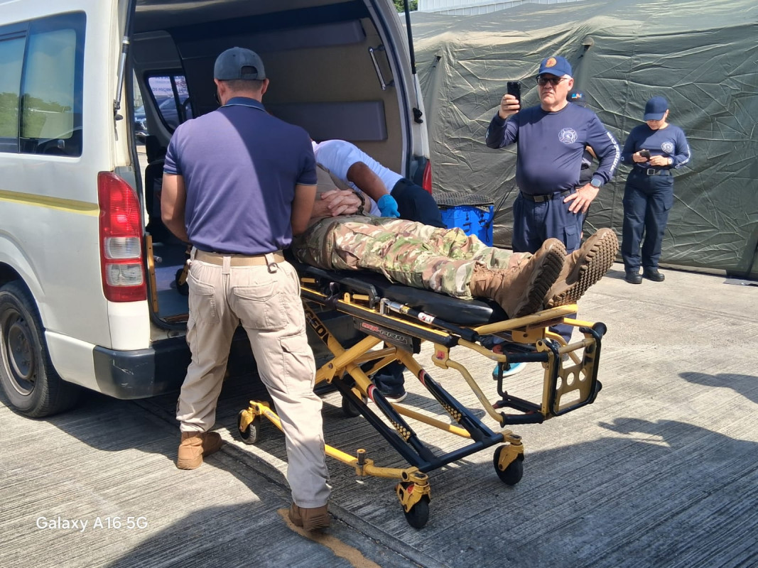 Panamá, 10 de septiembre de 2025.- Las áreas adyacentes al Centro Logístico Regional de Asistencia Humanitaria (CLARH), fue el escenario para que se realizará el simulacro “Panamá Alfa”, que sirvió para atender, en pequeñas carpas hospitalarias, a múltiples víctimas que sufrieron un supuesto accidente y a su vez se pudiera medir la capacidad de respuesta del personal médico ante una posible emergencia.