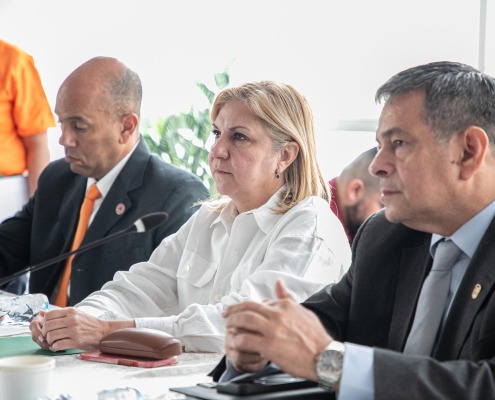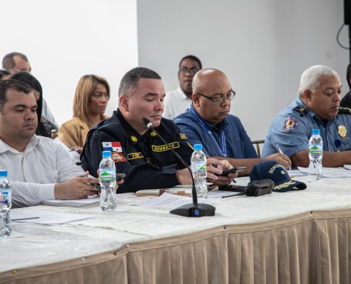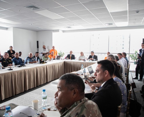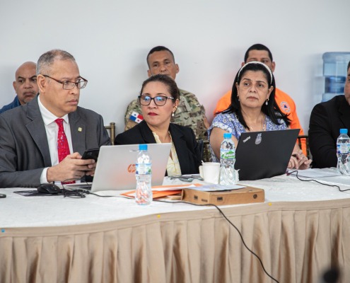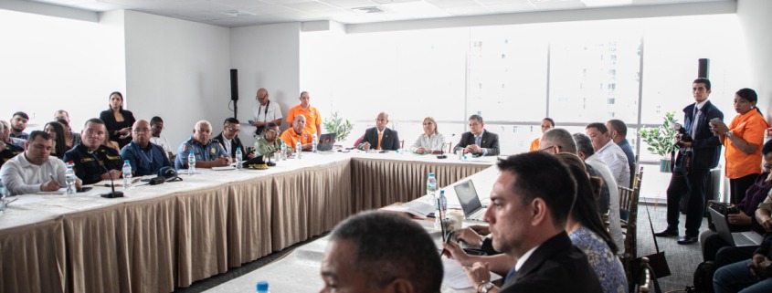 La ministra de Gobierno (Mingob), Dinoska Montalvo, junto al secretario general, Ángel Calderón, y el director general encargado del Sistema Nacional de Protección Civil (Sinaproc), Omar Smith, participan hoy miércoles de la reunión interinstitucional de coordinación para el Primer Simulacro Nacional, a realizarse el lunes 14 de octubre, actividad que tiene como objetivo robustecer la organización, coordinación, preparación y capacidad de respuesta de las distintas instituciones estatales ante situaciones de emergencia o desastres.