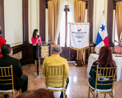 Panamá, 10 de septiembre de 2021. Integrantes del grupo musical “Los Rabanes” presentaron a la ministra de Gobierno, Janaina Tewaney Mencomo,