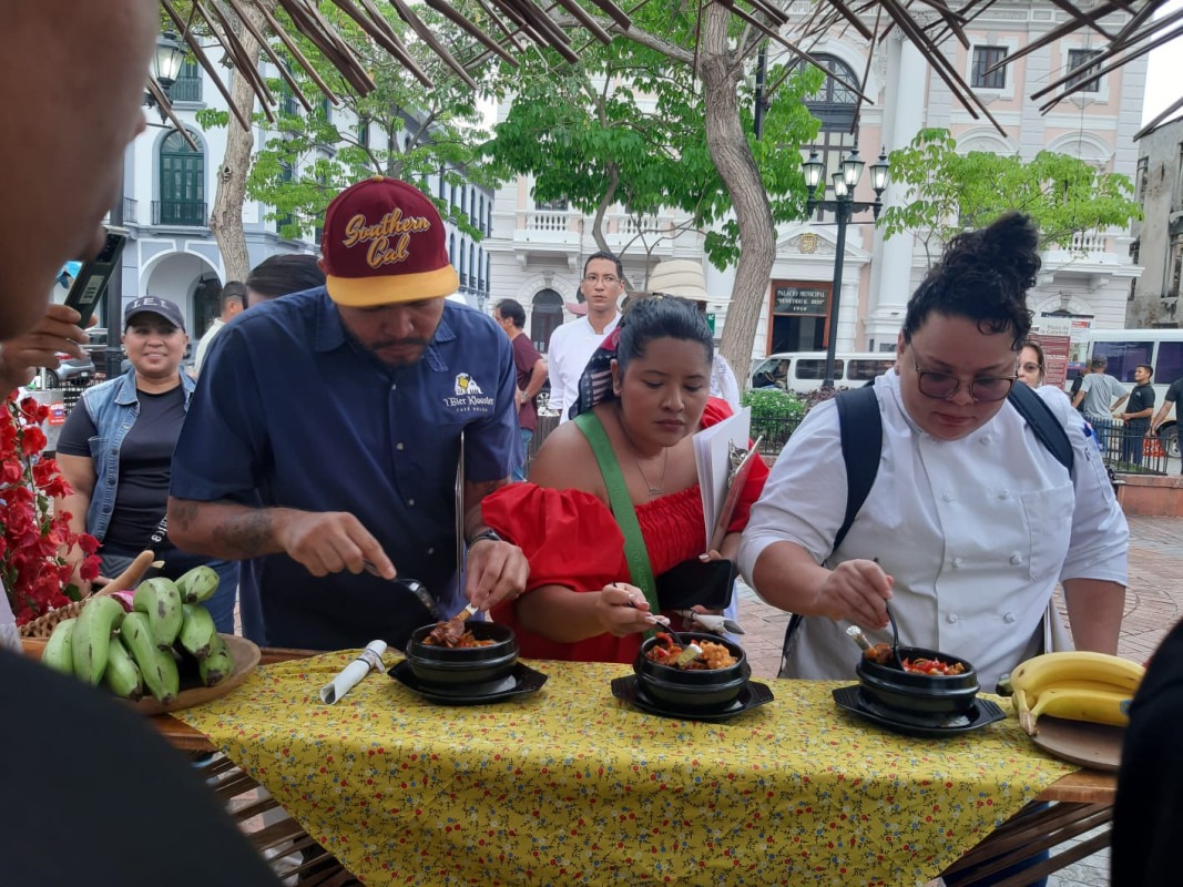 “Nos correspondió a la provincia de Veraguas, por lo que decidimos preparar un guacho de rabito de puerco con carne de cerdo ahumada en leña de nance y una salsa de ají morrón, para el chocado de guineo, usamos una técnica para gelificar con agar-agar que es un alga proveniente de Japón que ayudó a la solidificación del producto” compartió el Chef Israel Pérez.