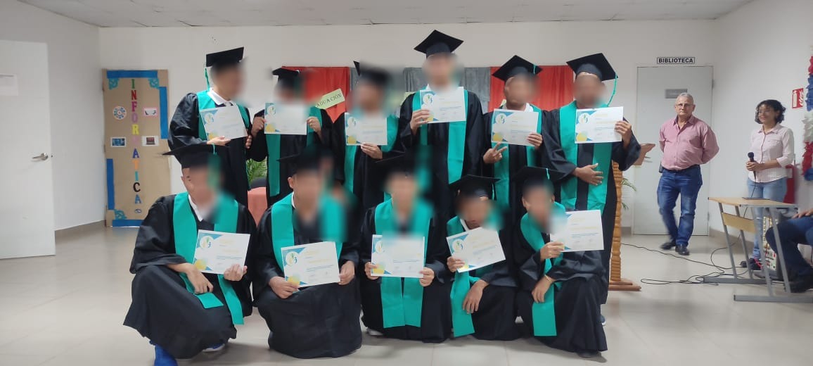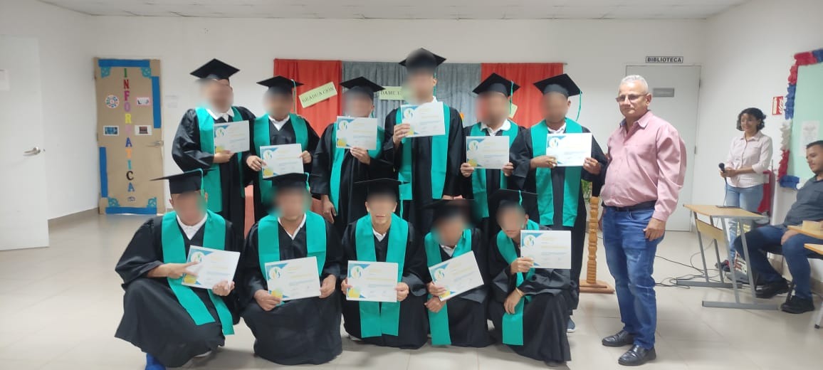 Herrera, 23 de febrero de 2024. – Un total de 11 adolescentes en conflicto con la Ley Penal del Centro de Custodia y Cumplimiento de Herrera (CCCH) se graduaron del programa “Escuela de Valores”, coordinado por el Instituto de Estudios Interdisciplinarios (IEI) y la Organización Dame Un Chance, robusteciendo el proceso de resocialización mediante la intervención cognitiva, motivacional y emocional.